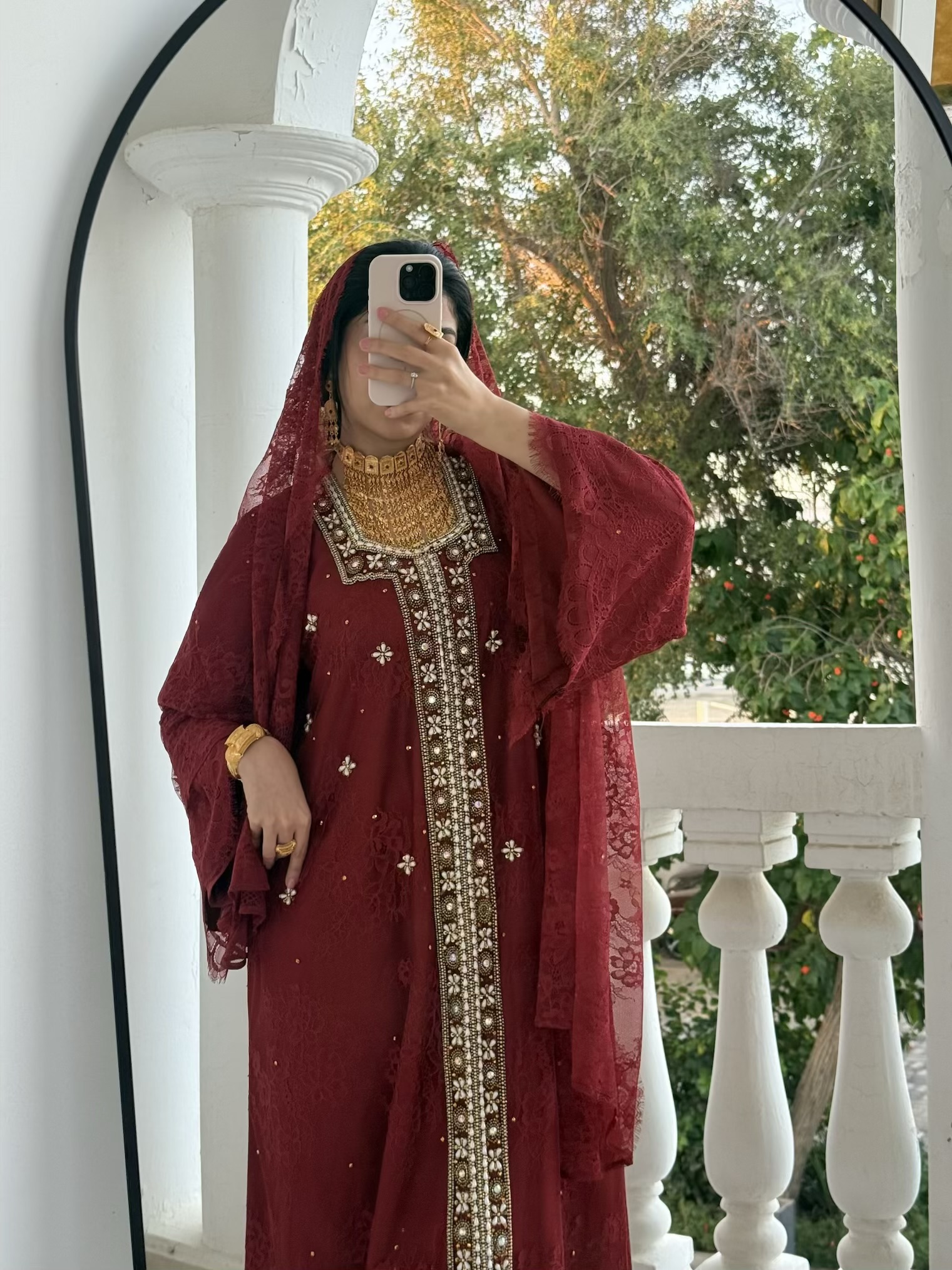 Design Details: hand beaded work Size: Free size 48 inch bust round ( if your bust round is larger please write down your size in the notes ) Important Notes: - There may be slight differences in color shades due to lighting during photography. - For free-size dresses, please check the width information provided in the description before purchasing. - Make sure to read all updates on our Instagram page regarding designs, processing time, and other important notices. - Please check our size guide for additional details before confirming your order. - If FREE SIZE Please check the width measurements provided in the description