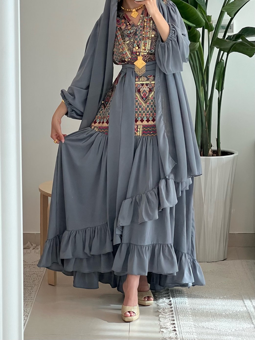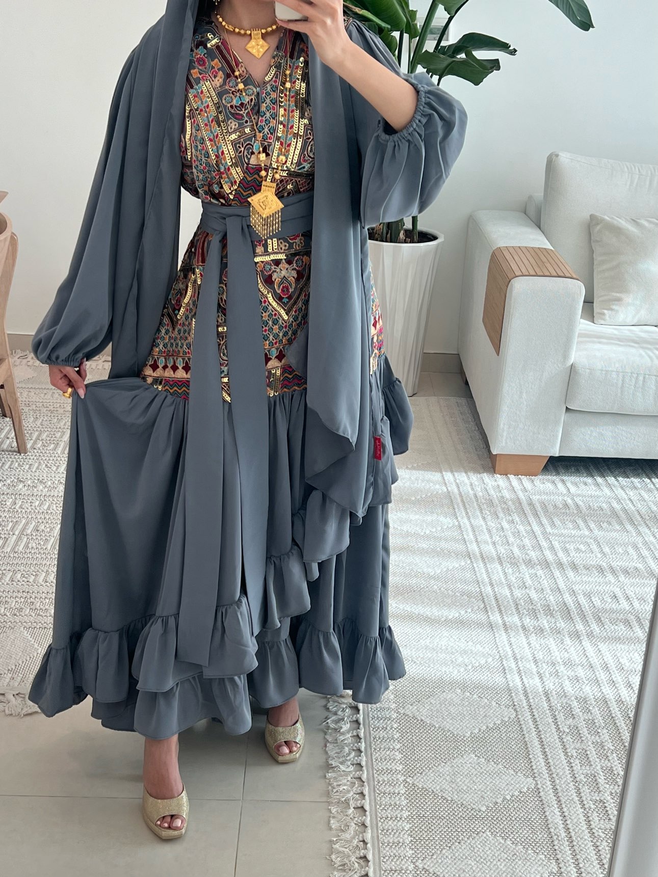 مدة التفصيل: 15–22 يوم الشيلة: متضمنة لون اللبس اغمق من الصور الحزام: يوجد حزام منفصل يجب اختيار طول اقصر ب ٢-٣ انش كون الدراعة بها ذيل من الخلف اطول من الامام : ملاحظات مهمة قد تظهر اختلافات بسيطة في درجة اللون بسبب الإضاءة أثناء التصوير بالنسبة للفساتين ذات المقاس (فري سايز)، يُرجى التأكد من قياسات العرض المذكورة في الوصف قبل إتمام الشراء يُرجى متابعة جميع التحديثات المنشورة على صفحتنا في انستجرام بخصوص التصاميم، ومدة التجهيز، والملاحظات المهمة يُرجى مراجعة دليل المقاسات قبل تأكيد الطلب للحصول على تفاصيل أدق