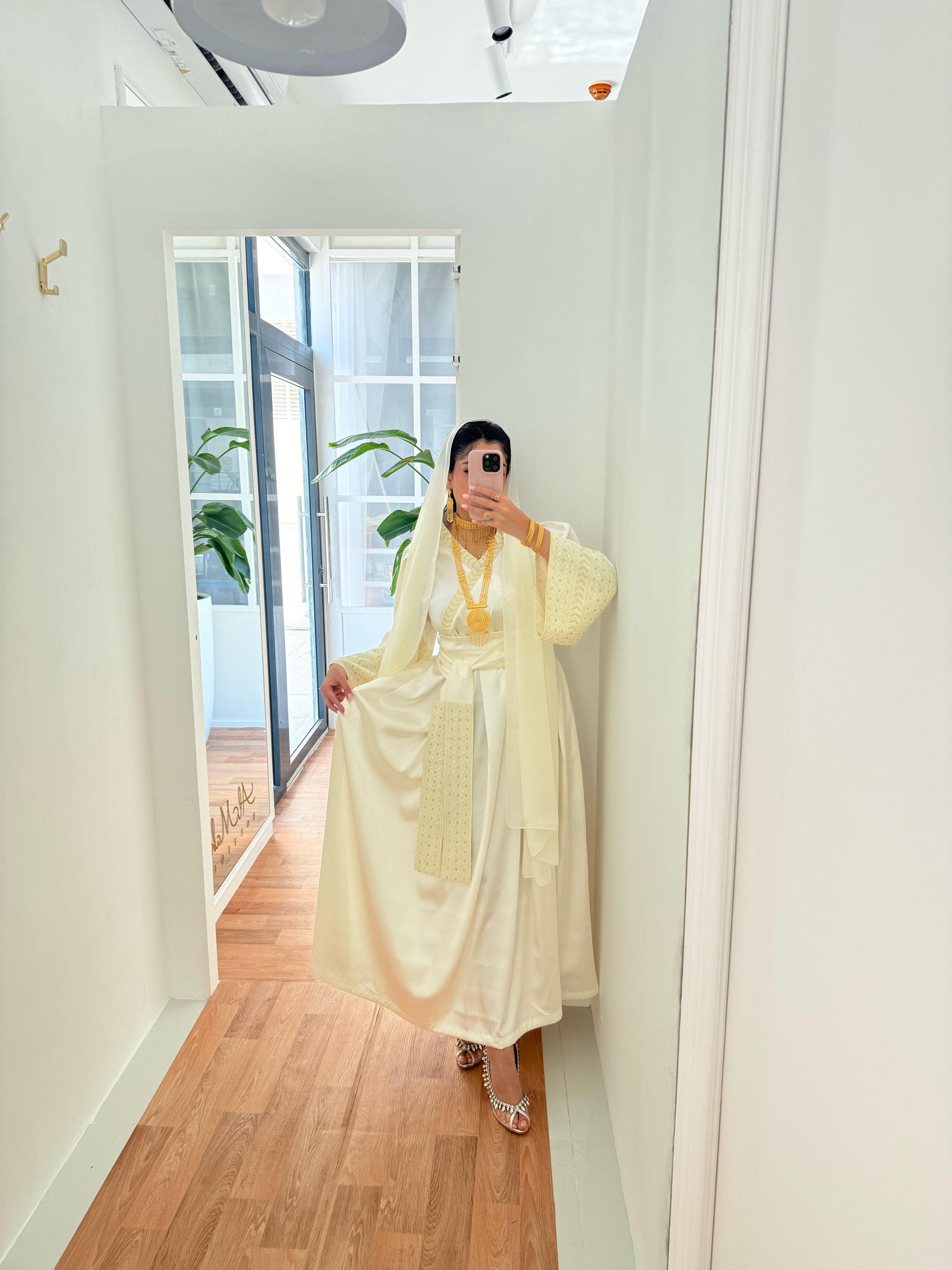 مدة التفصيل: 15–22 يوم الشيلة: متضمنة الحزام: يوجد حزام منفصل المقاس : تأكدي من دليل المقاسات قبل الطلب و اذا كانت لديك مقاسات تفصيلية اذكريها لما في الملاحظات مع الزيادة المرغوبة : ملاحظات مهمة قد تظهر اختلافات بسيطة في درجة اللون بسبب الإضاءة أثناء التصوير بالنسبة للفساتين ذات المقاس (فري سايز)، يُرجى التأكد من قياسات العرض المذكورة في الوصف قبل إتمام الشراء يُرجى متابعة جميع التحديثات المنشورة على صفحتنا في انستجرام بخصوص التصاميم، ومدة التجهيز، والملاحظات المهمة يُرجى مراجعة دليل المقاسات قبل تأكيد الطلب للحصول على تفاصيل أدق