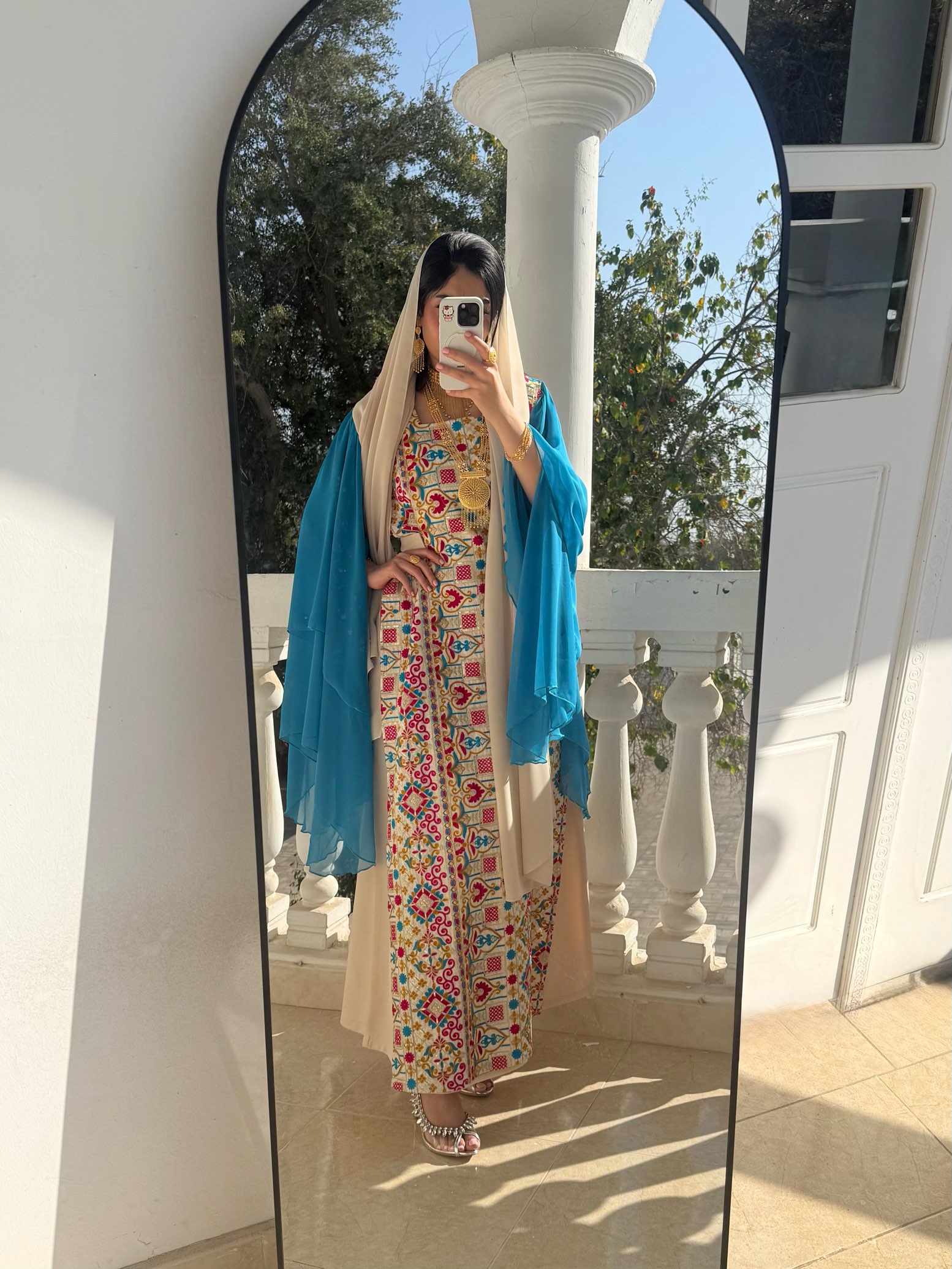 لأنكِ تستحقين إطلالة راقية تعكس ذوقك المتميز، يأتي هذا التصميم الملكي ليجمع بين نعومة اللون البيج وفخامة التفاصيل في قطعة تمنحك حضوراً أنيقًا ومميزًا في جميع مناسباتك تفاصيل التصميم تطريز مُتقن يزين الواجهة الأمامية ويضفي لمسة فاخرة راقية قصة ملكية بانسيابية أنيقة تمنح مظهراً متناسقاً وجذاباً نوع القماش: كريب وسط الشيلة: غير متضمنة مع التصميم الحزام: يأتي مع حزام في حدود الخصر يُربط للخلف المقاس فري سايز – دوران الصدر 48 إنش في حال كان المقاس أكبر من القياس المذكور، يرجى كتابة ذلك في خانة الملاحظات ليتم التنفيذ حسب الطلب مدة التفصيل مدة التنفيذ تتراوح بين 7 إلى 22 يوم عمل الطلبات العاجلة في حال كان الطلب عاجلاً، يجب توضيح ذلك في خانة الملاحظات أثناء إتمام الطلب كما يرجى التواصل معنا عبر الواتساب لتأكيد صفة الاستعجال حتى نتمكن من تسريع عملية التنفيذ قدر الإمكان تخضع الطلبات العاجلة لجدول الإنتاج وإمكانية التنفيذ حسب الطاقة المتاحة ملاحظات مهمة قد تظهر اختلافات بسيطة في درجة اللون نتيجة الإضاءة أثناء التصوير بالنسبة للتصاميم ذات المقاس (فري سايز)، يرجى التأكد من قياسات العرض المذكورة في الوصف قبل إتمام الشراء يتحمل العميل مسؤولية مراجعة دليل المقاسات والتأكد من صحة المعلومات قبل تأكيد الطلب لا يُعتد بأي طلب تعديل بعد بدء مرحلة التفصيل يرجى متابعة جميع التحديثات المنشورة على صفحتنا في إنستجرام بخصوص التصاميم